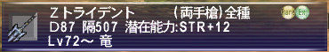 • Zトライデント ExRare 両手槍 D87 隔507 潜在能力:STR+12 Lv72〜 竜